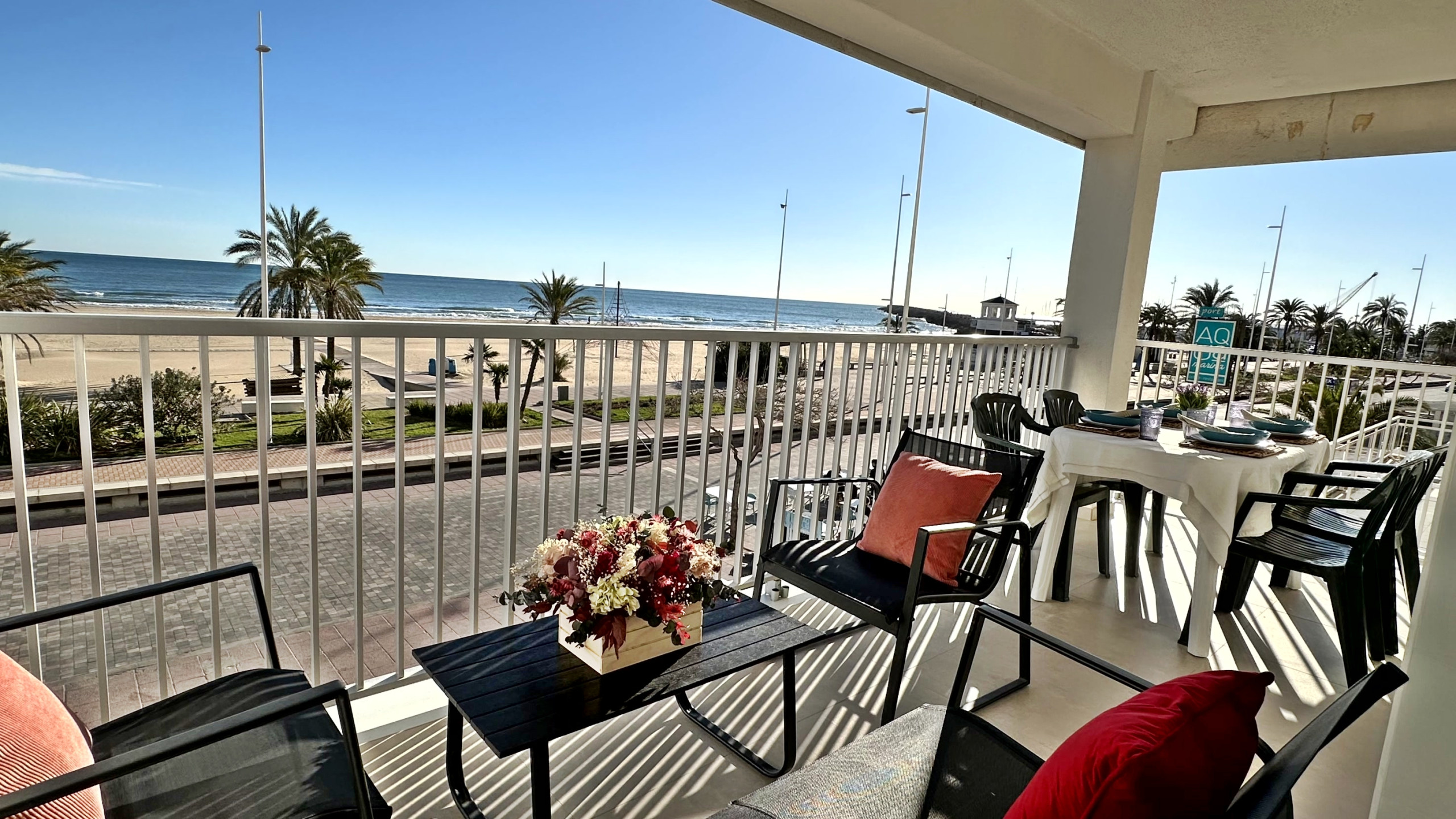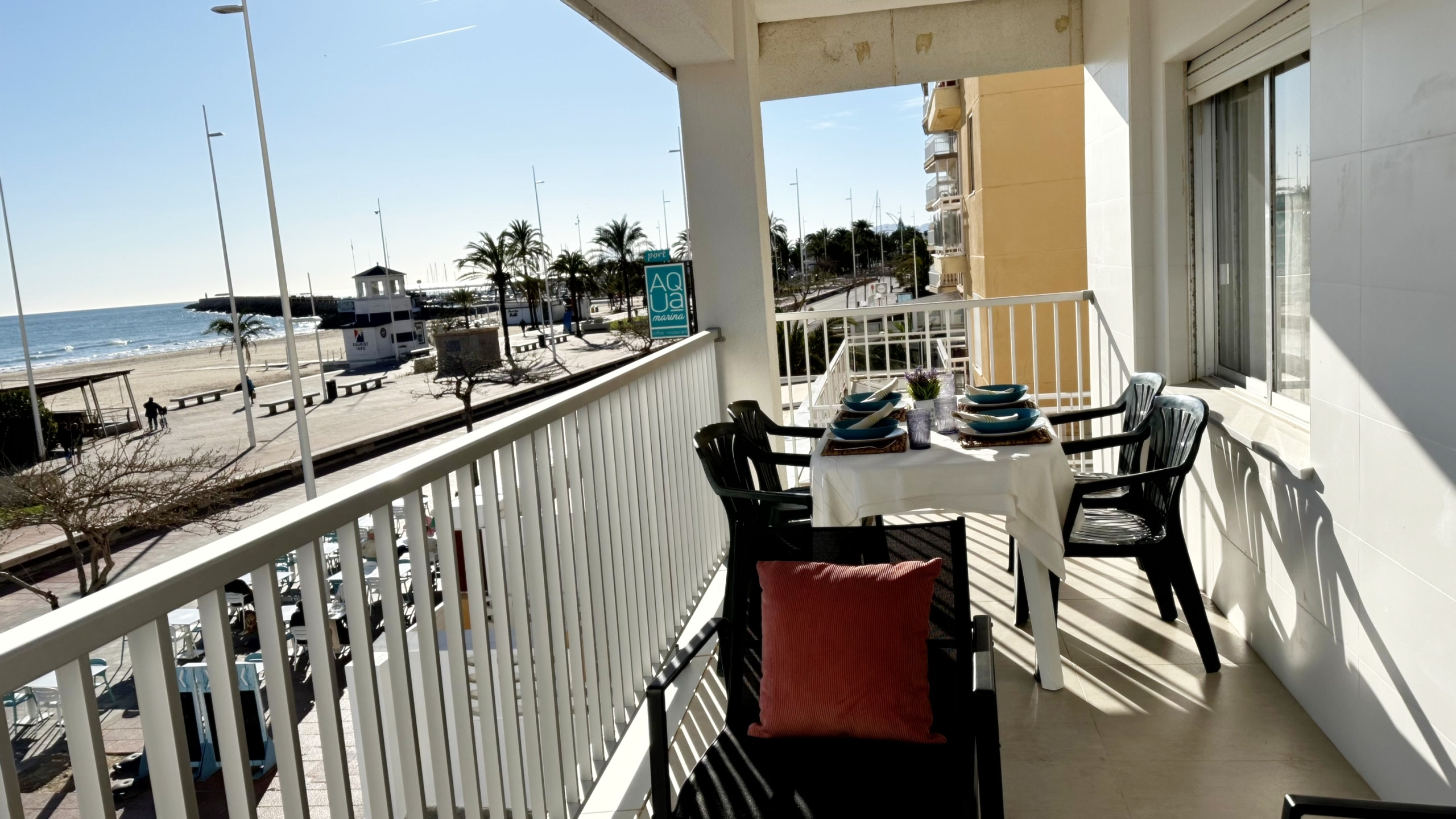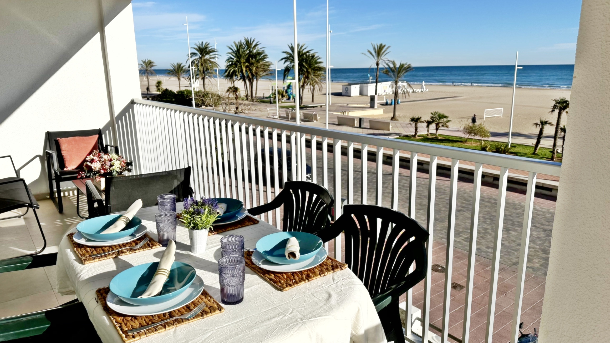 El apartamento se encuentra en PRIMERA LÍNEA DE PLAYA con vistas frontales al mar, en una de las mejores zonas de la playa de Gandia, a escasos metros del club náutico de Gandía, y muy cerda de todos los servicios como heladerías, cafeterías, peluquería, supermercado y todo lo necesario para una confortable estancia sin necesidad de utilizar el coche.