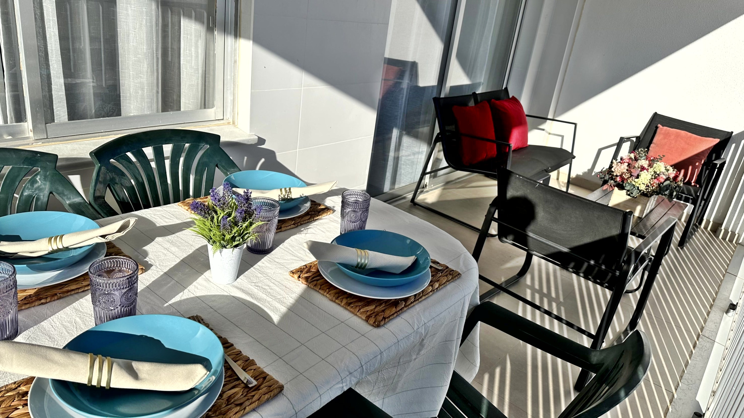CONSTA DE: de 2 dormitorios con dos camas cada uno, salón con cama supletoria, cocina independiente totalmente equipada,1 cuarto de baño completo con bañera y GRAN terraza