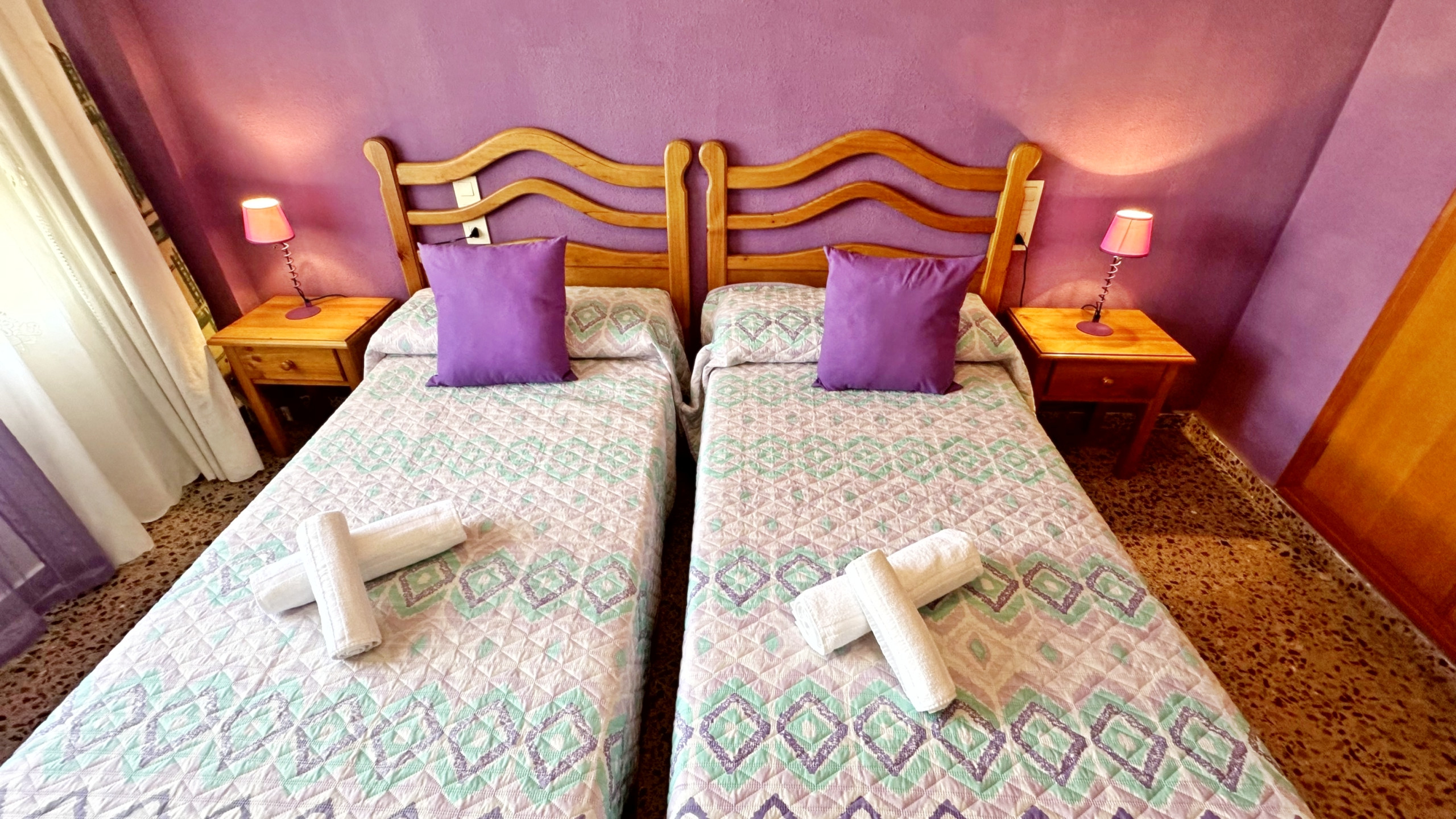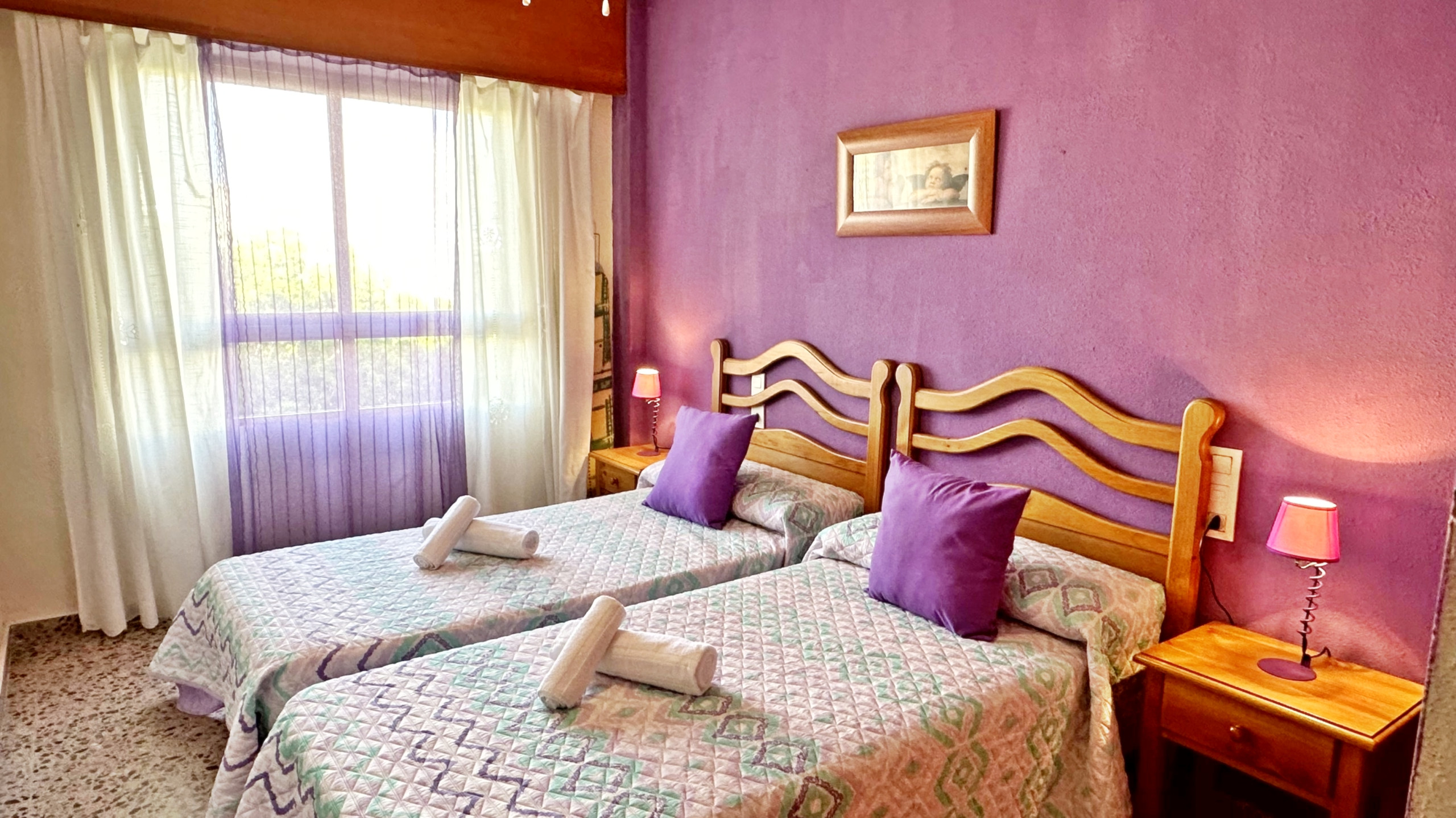 CONSTA DE: de 2 dormitorios dobles con dos camas individuales cada uno, salón con cama supletoria, cocina independiente totalmente equipada, 1 cuarto de baño completo con bañera y terraza con vistas al parque Baladre.