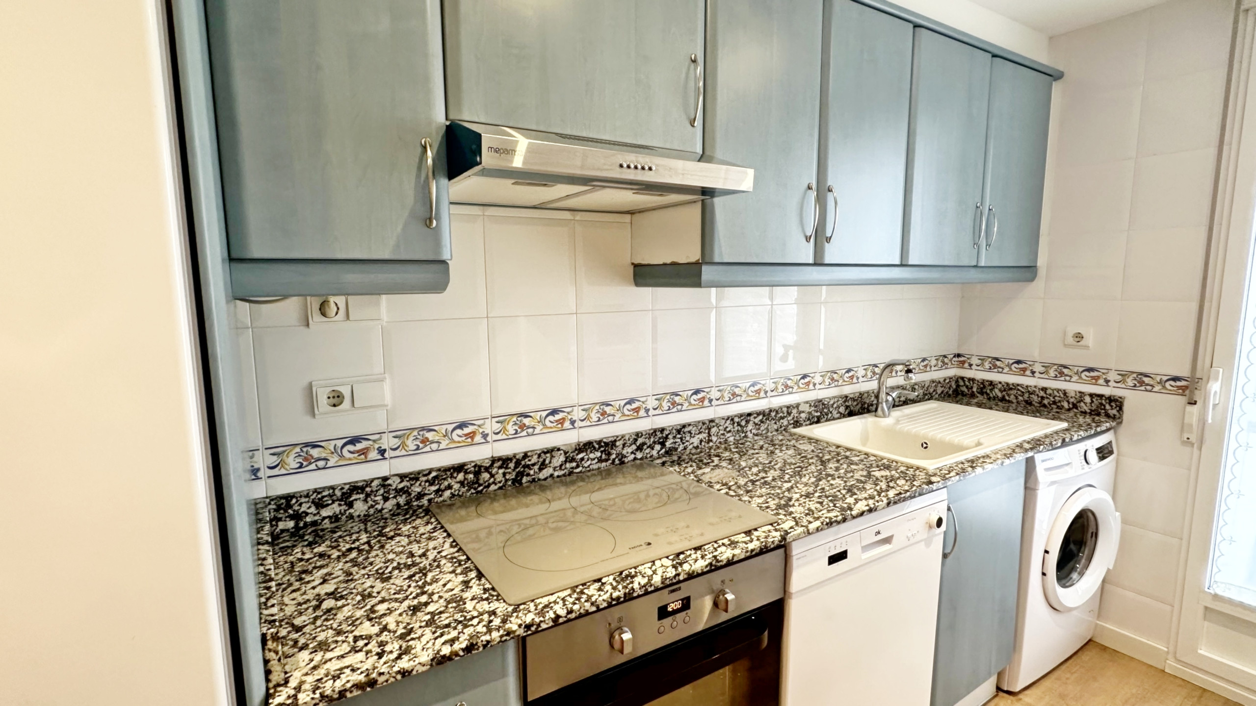 EQUIPADO CON: TV, Lavadora, frigorífico, Vitro, microondas, Horno, tostador, plancha y tabla de planchar.