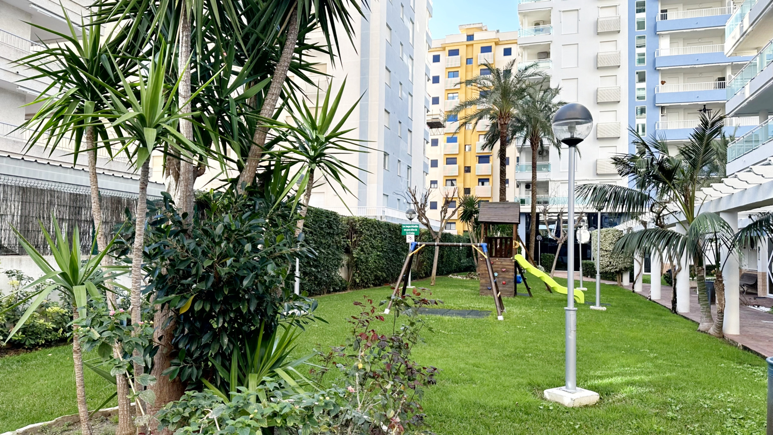 Descubre este moderno y luminoso apartamento situado a solo 450 metros de la playa de Gandía, en la exclusiva zona norte. Ubicado en una urbanización contemporánea, ofrece todas las comodidades para disfrutar de una estancia relajante y completa, ideal para familias.