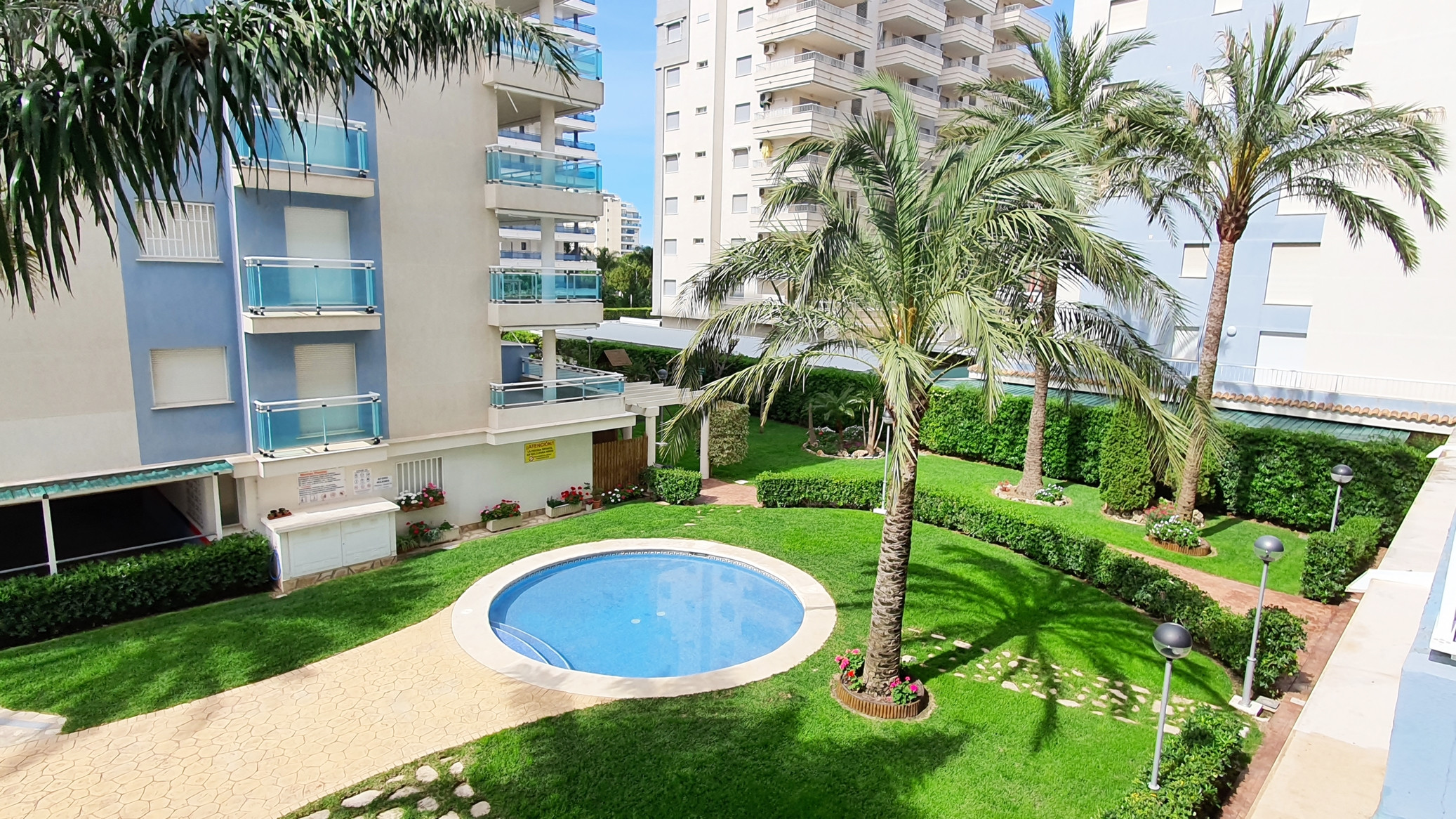 Apartamento de 3 dormitorios, con piscina, pista de tenis y Garaje. Capacidad para 6 personas. Situado a unos 400 m . de la playa en C/ de la Rioja nº 125