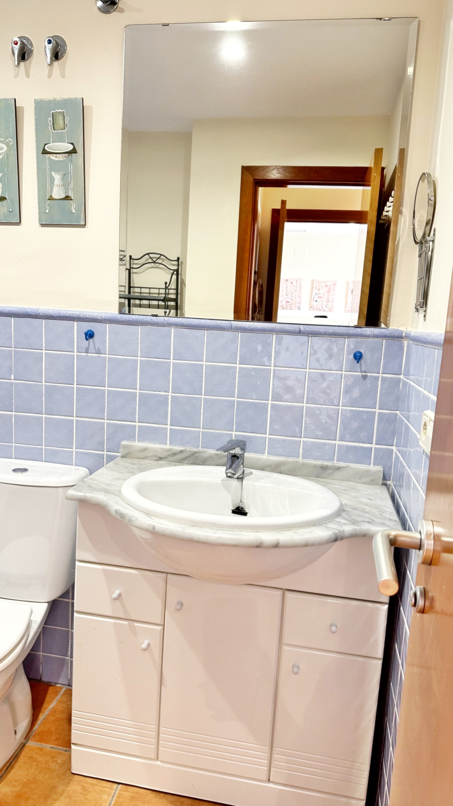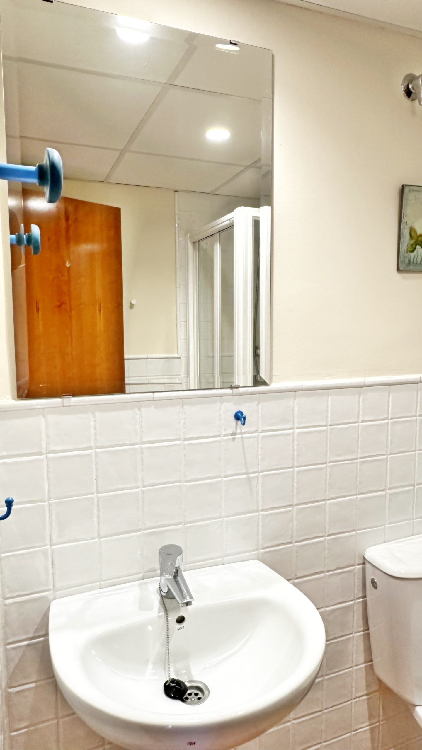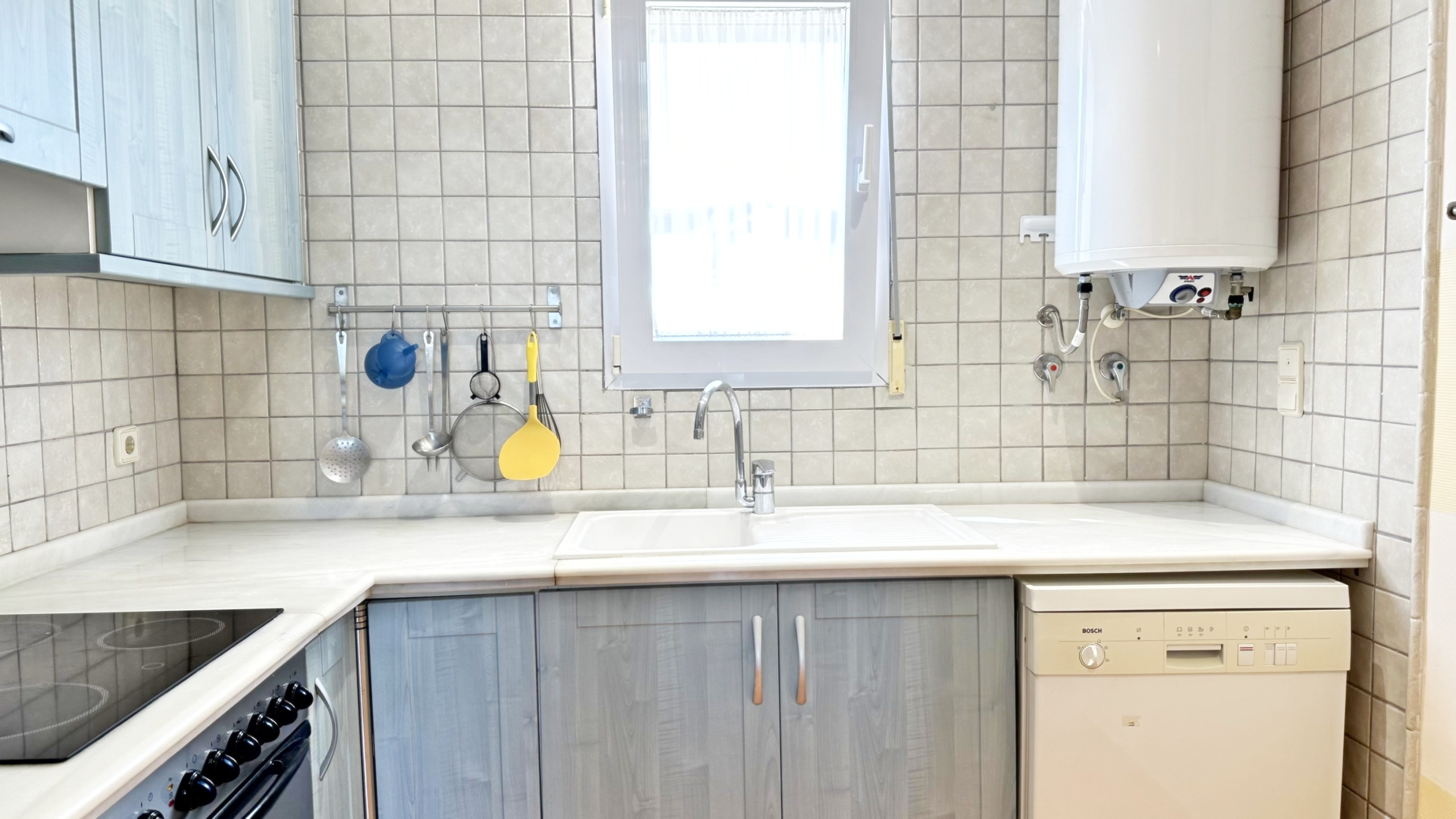 El apartamento esta equipado de televisión Smart 32”, micro-ondas, lavavajillas, frigorífico, plancha, tabla de planchar y tendedero.