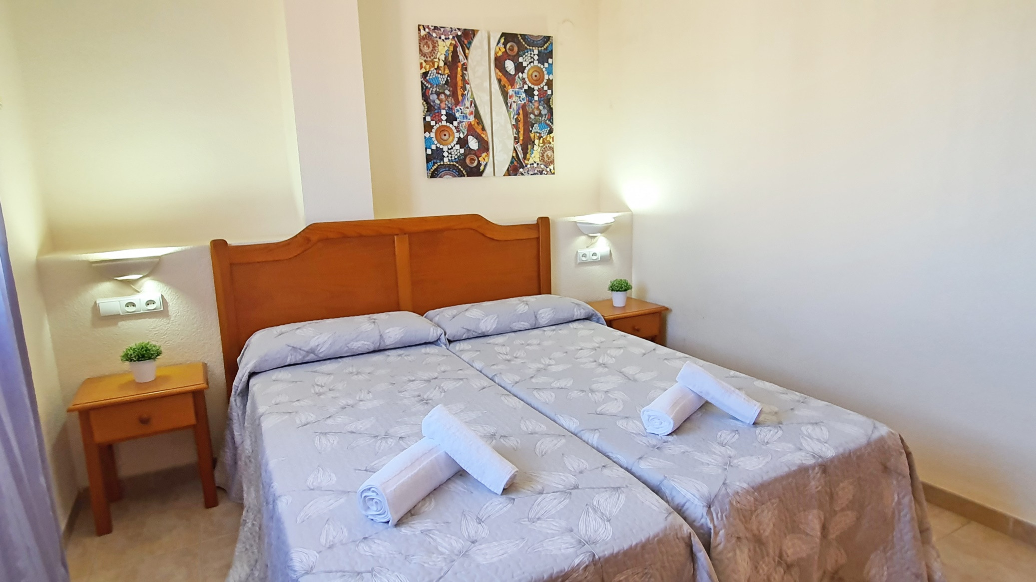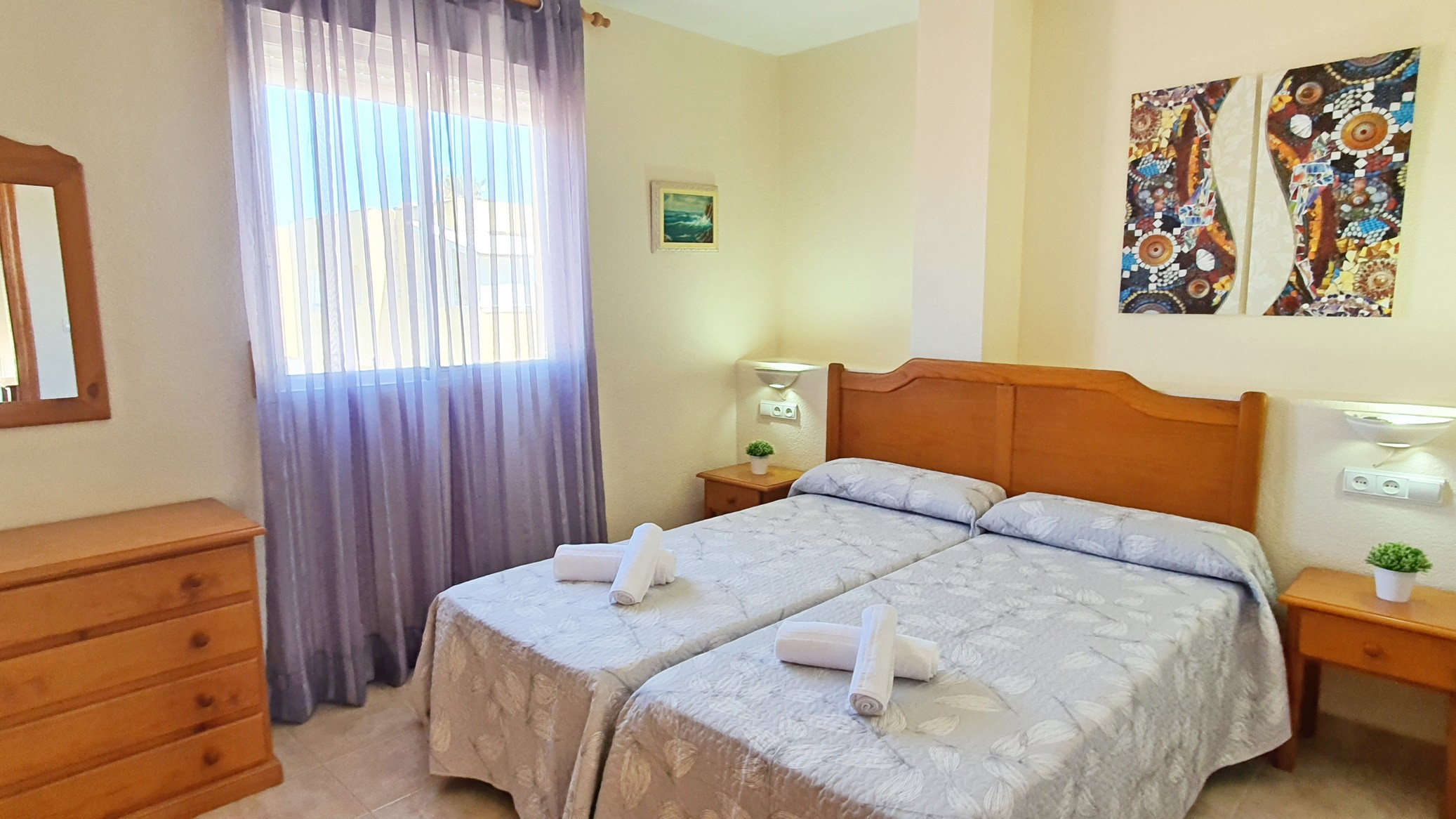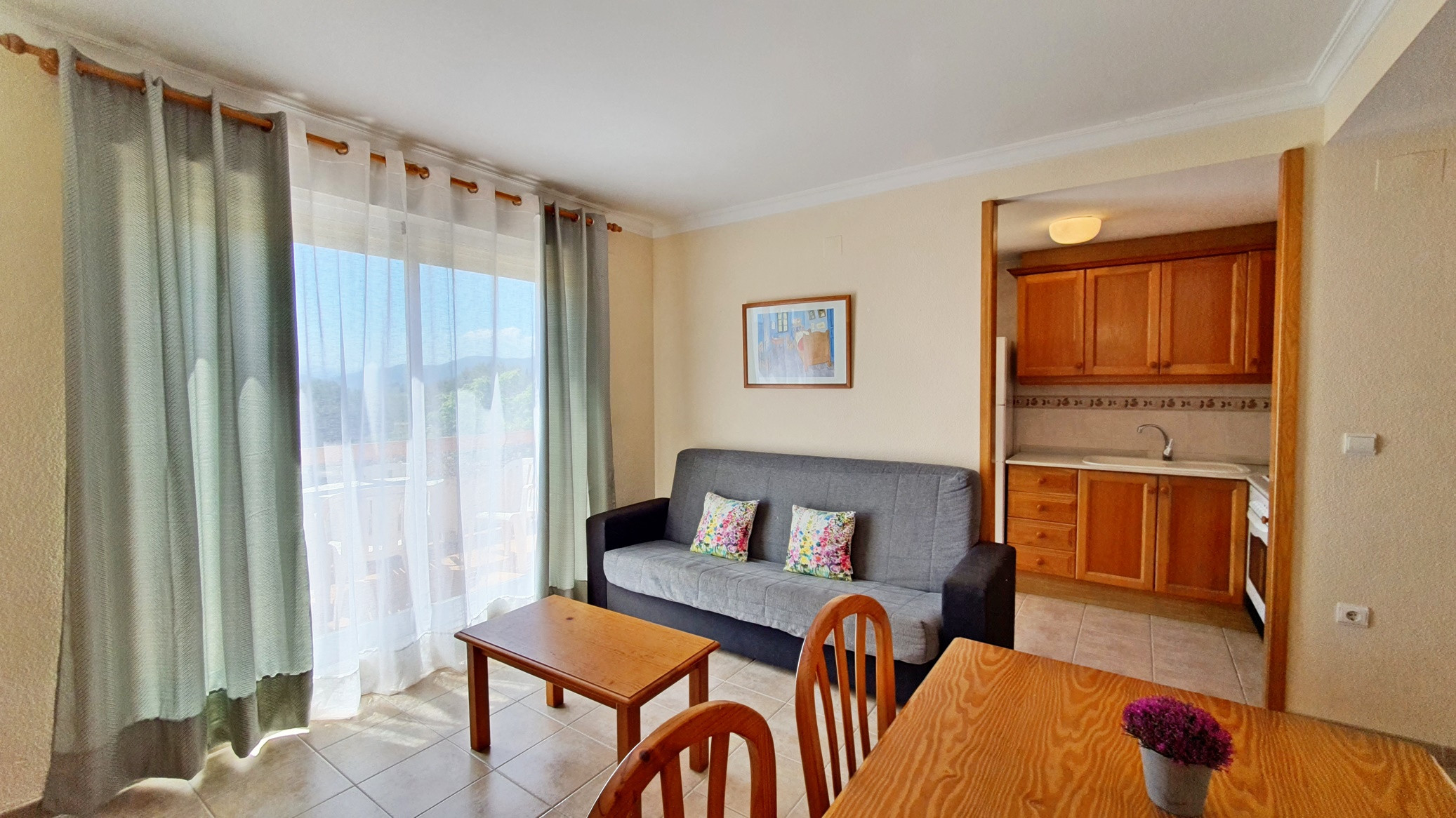 CONSTA DE: de 1 dormitorio con dos camas, salón con sofá cama, cocina independiente totalmente equipada, 1 cuarto de baño completo con bañera y gran terraza con vistas al parque y a la calle.