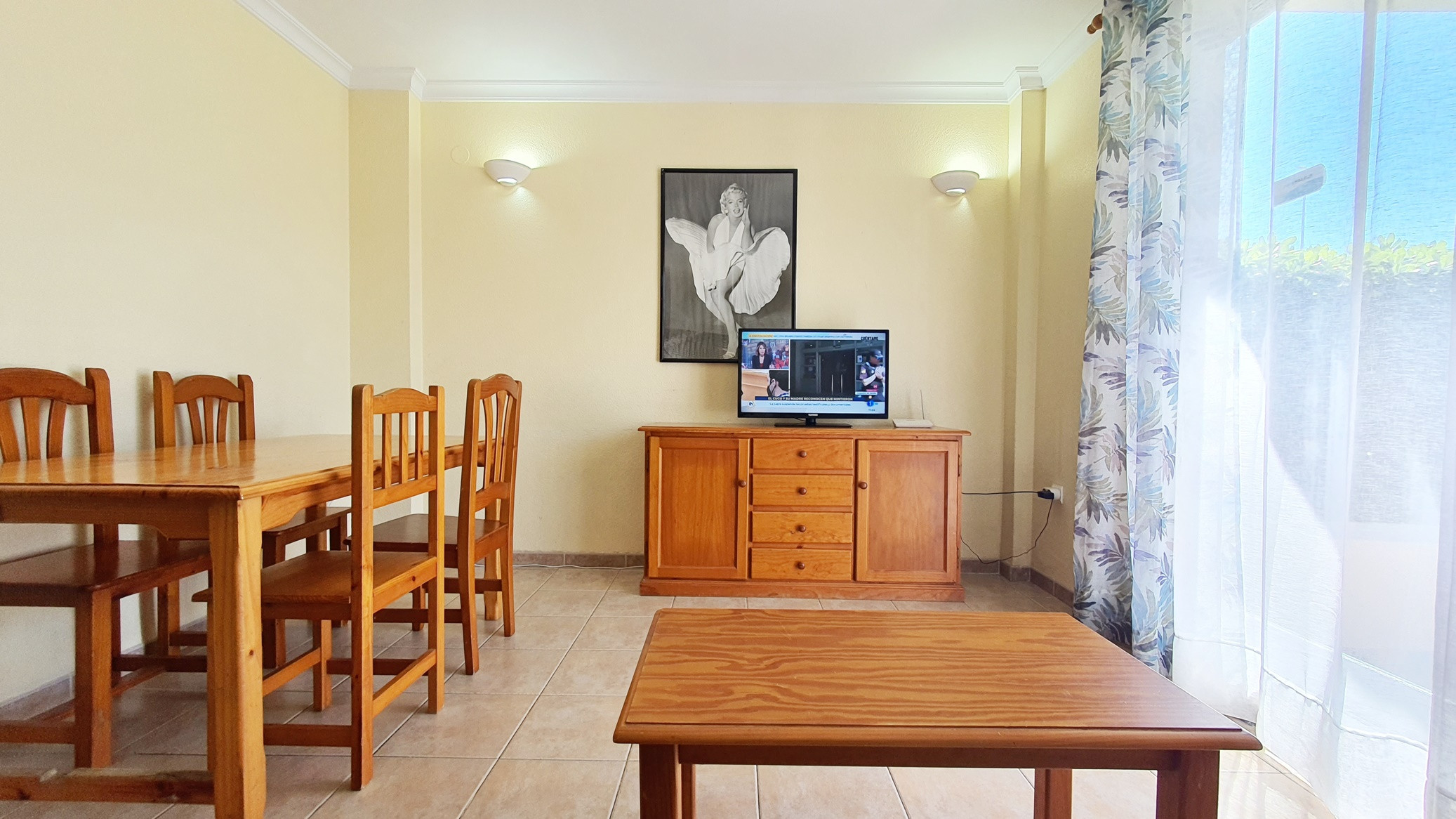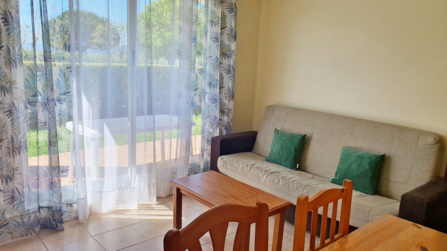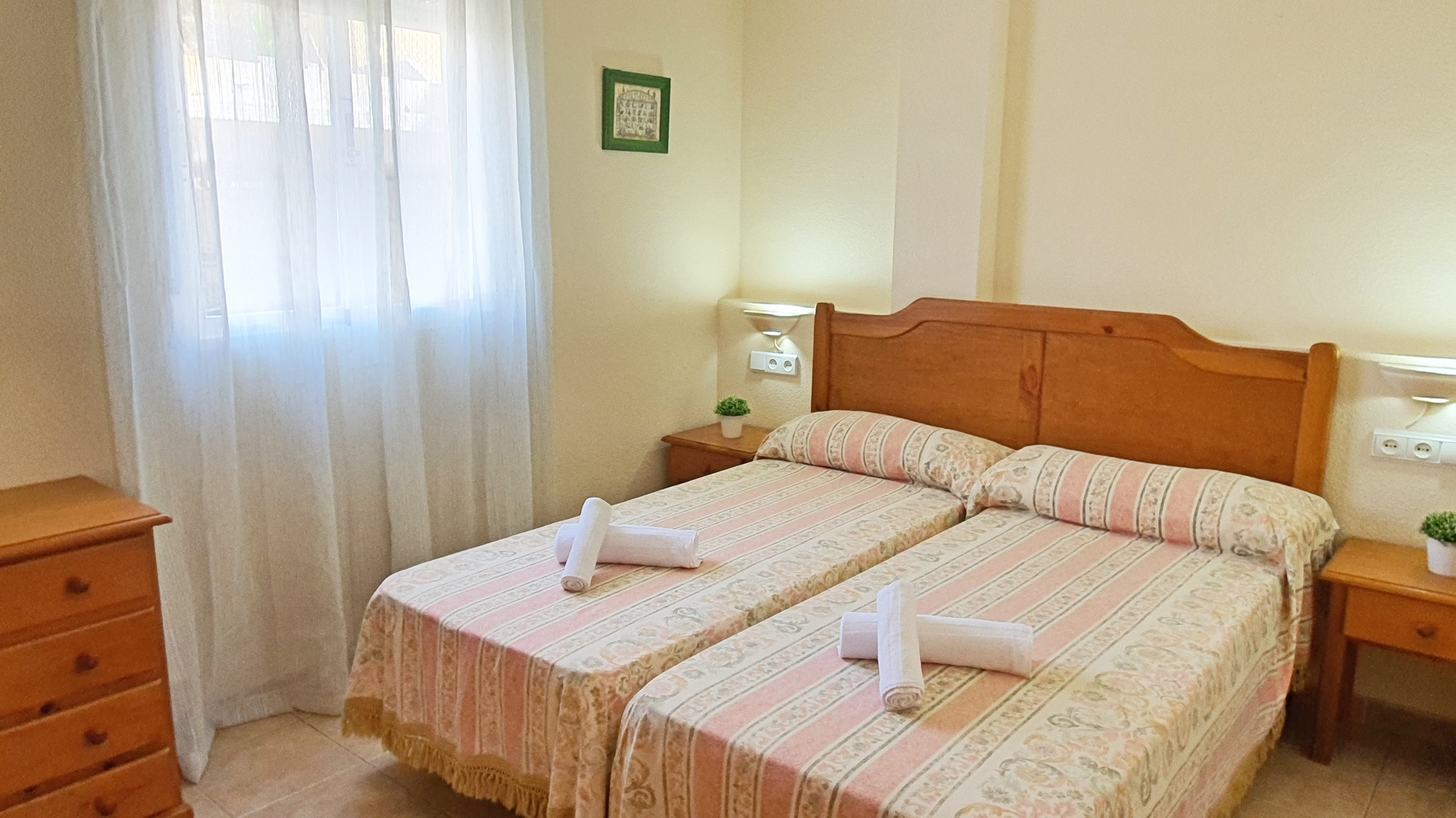 CONSTA DE: de 1 dormitorio con dos camas, salón con sofá cama, cocina independiente totalmente equipada, 1 cuarto de baño completo con bañera y gran terraza con vistas al parque y a la calle.