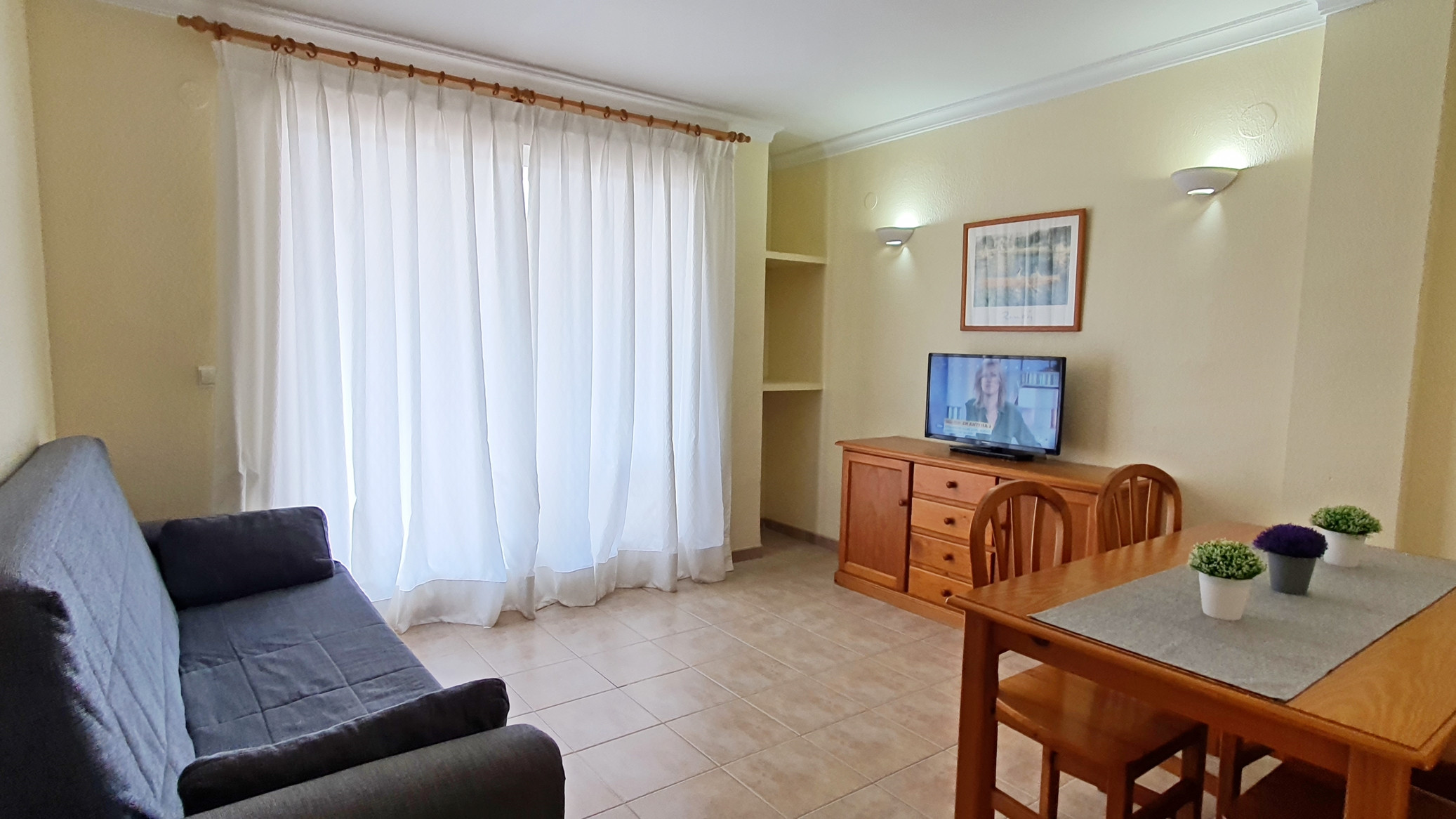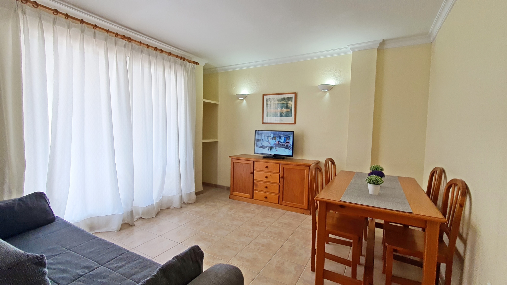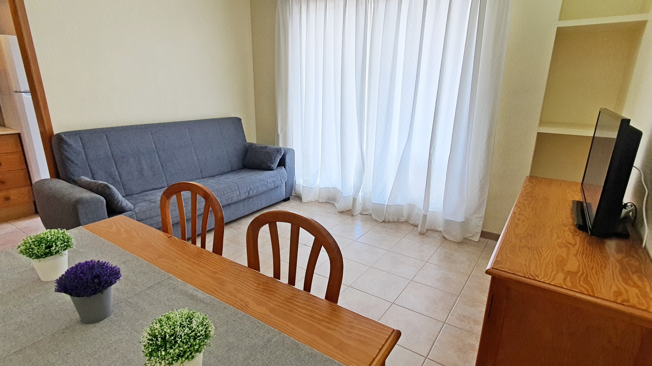 EQUIPADO CON: TV, Lavadora, frigorífico, microondas, horno, tostador, plancha y tabla de planchar.