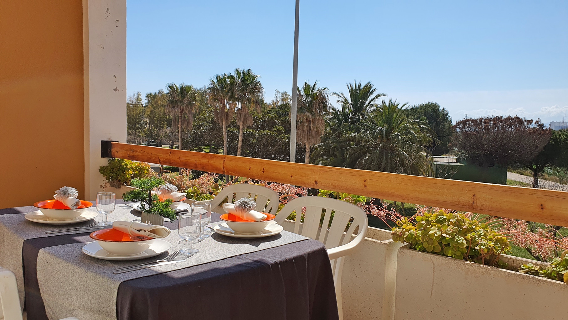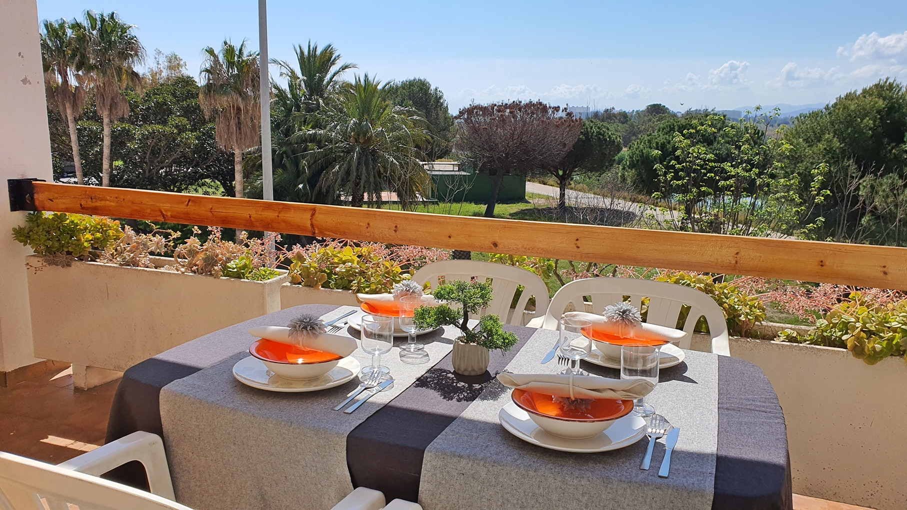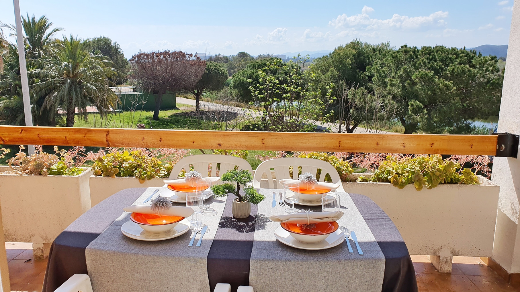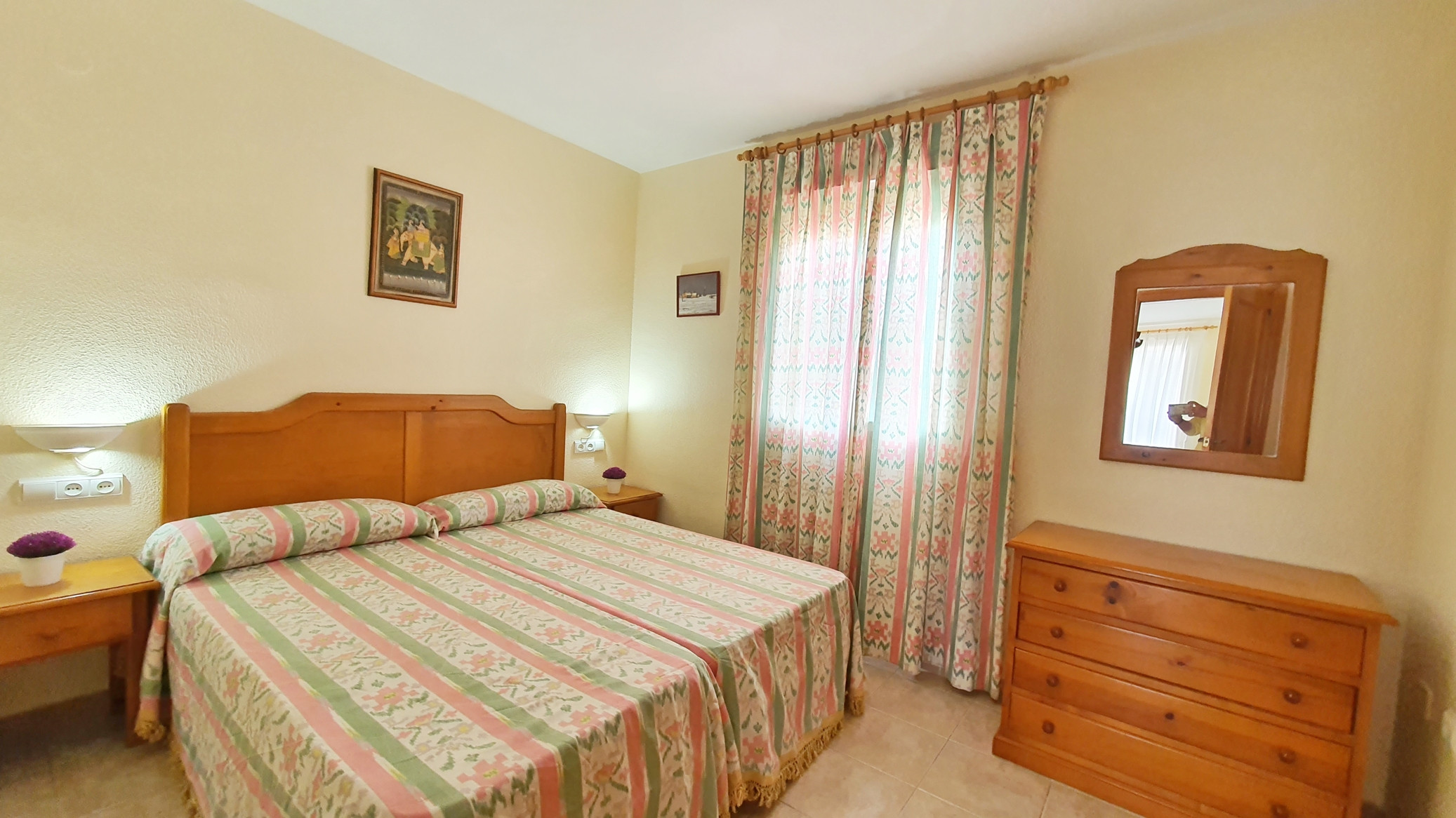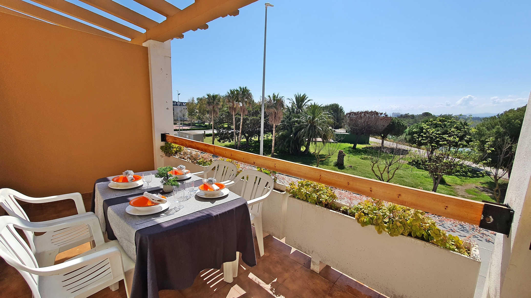 CONSTA DE: de 1 dormitorio con dos camas, salón con sofá cama, cocina independiente totalmente equipada, 1 cuarto de baño completo con bañera y gran terraza con vistas al parque y a la calle.